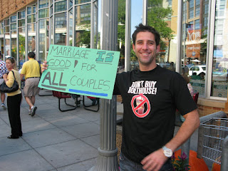 WASHINGTON, DC – At its third demonstration in 3 weeks, an enthusiastic group of dedicated volunteers spent Sunday afternoon in front of the Whole Foods Market (NASDAQ: WFMI) in the heart of Washington’s Gay Neighborhood. This protest follows similar ones held in Los Angeles and New York the previous two weekends. The demonstrations against Bolthouse Farms are because of a $100,000 contribution from William Bolthouse, Jr. to California’s Protect Marriage – Yes on Proposition 8 Campaign. If passed, Proposition 8 would eliminate same-sex marriage in California.